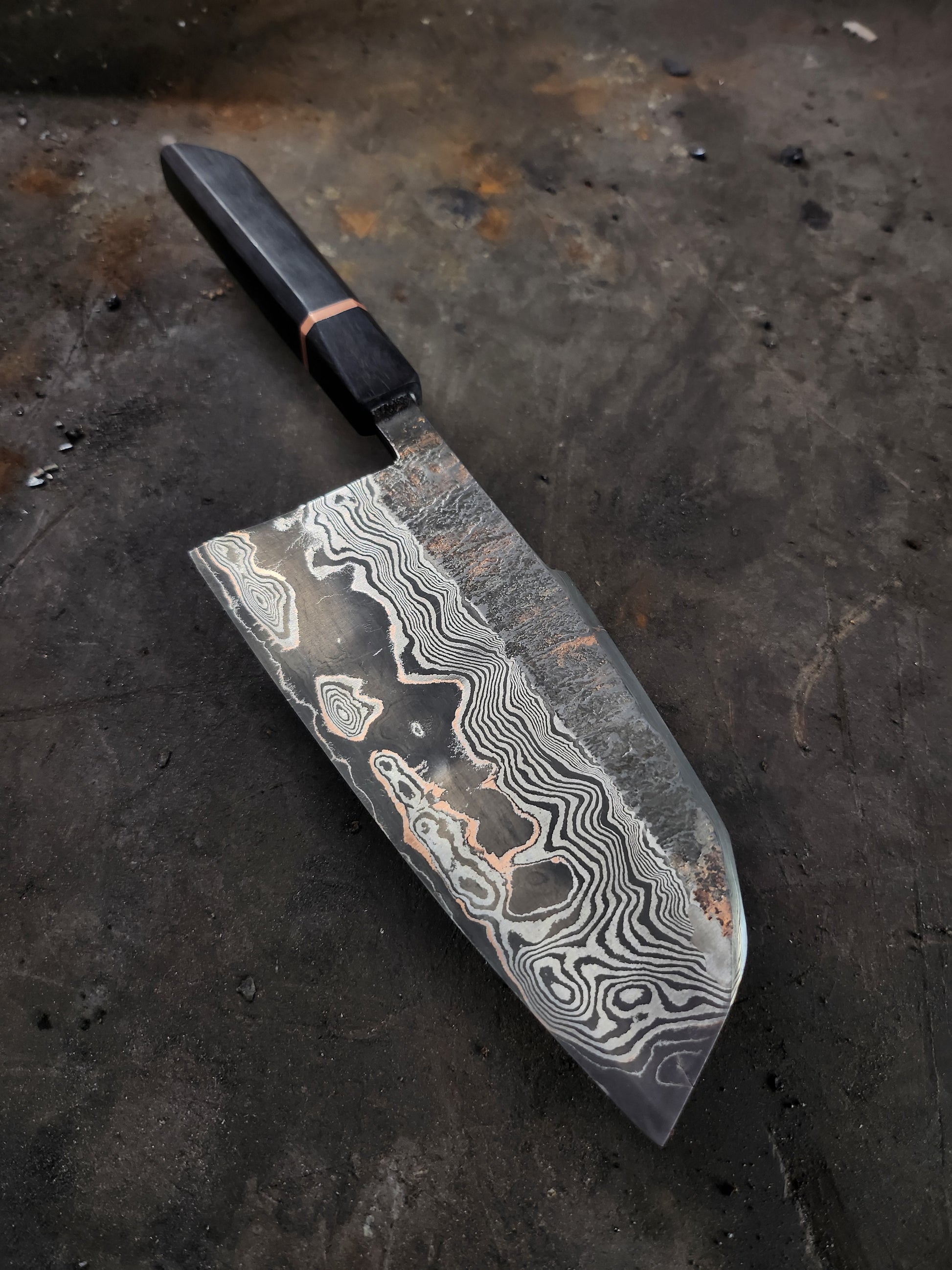 Manico ebano e distanziale in rame per riprendere i colori della lama!!